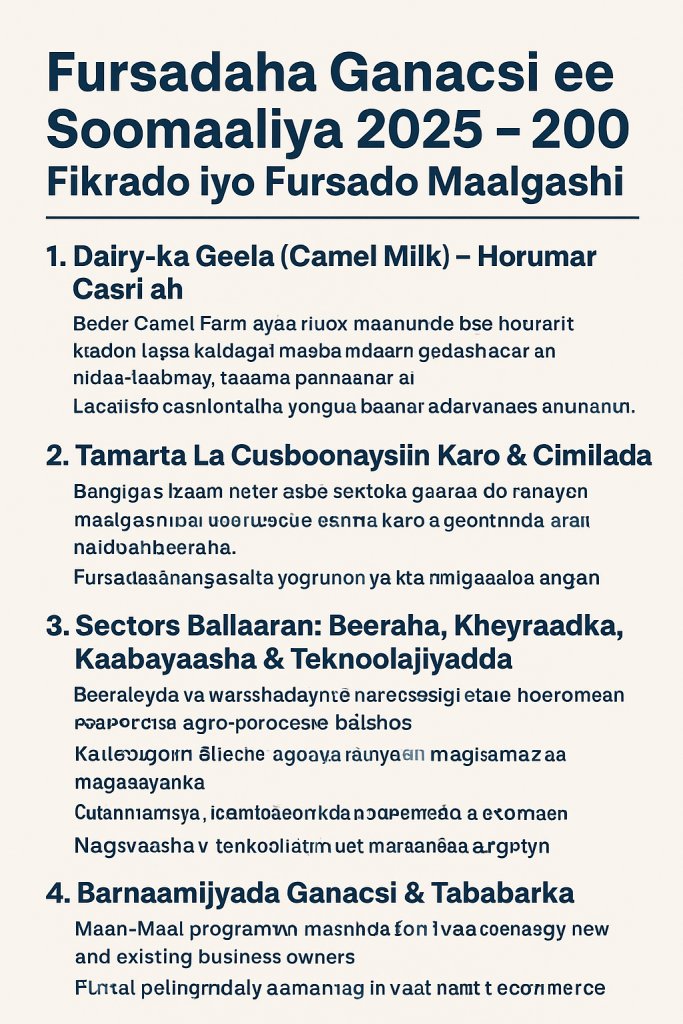 Fursadaha Ganacsi ee Soomaaliya: Xog-ururin 2025